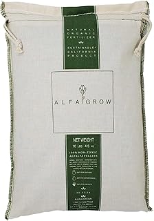 Alfagrow – 10 lbs Alfalfa Pellets, Natural Fertilizer, Soil Amendment, Mulch, High in Nitrogen, Canvas Drawstring Reusable Bag, Great for Roses